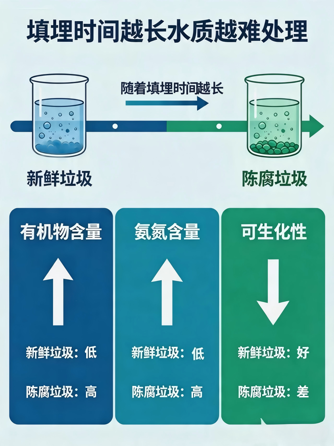 水质特点②:填埋时长决定处理难度