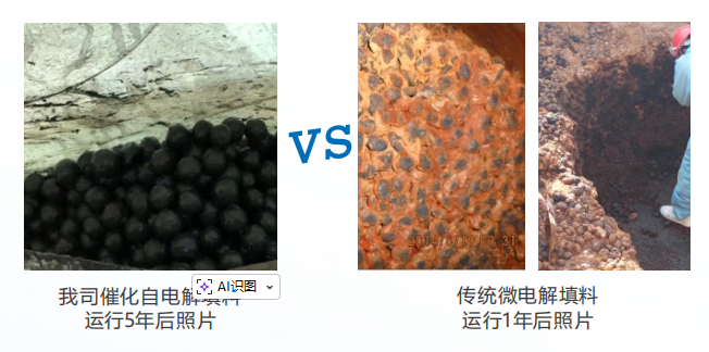 (c)除重金属离子:例如铜离子等,与铁碳材料反应后,铜被置换截留于填料上,从废水中分离,得以净化。六价铬在酸性条件下,经铁碳处理,还原为三价铬,出水调PH至7-8,生成沉淀分离去除。
